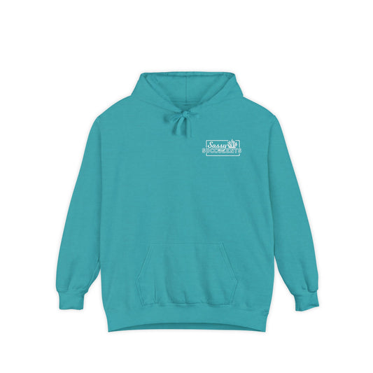 Salty Quahog Embroidered Hoodie with Lobster on sleeve