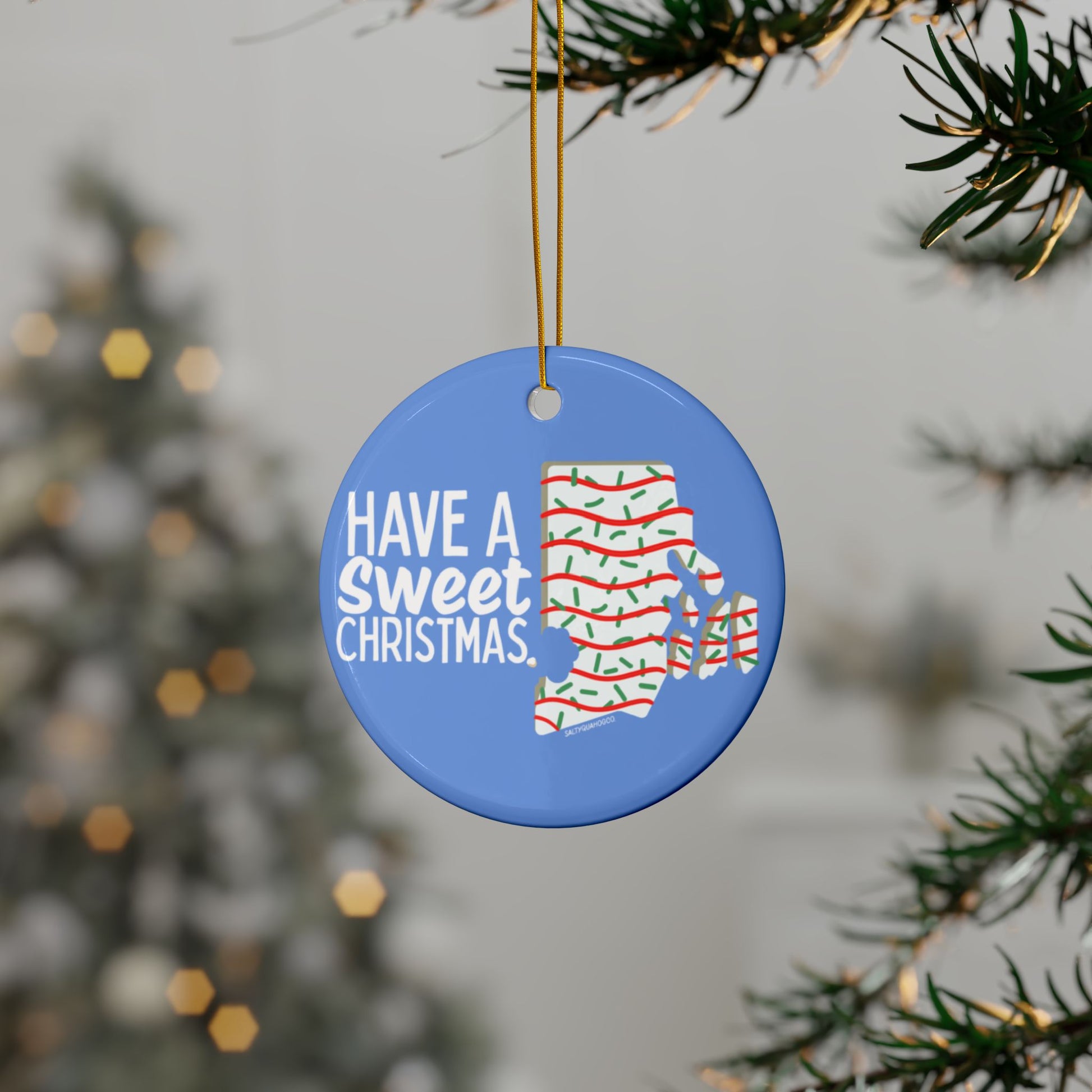 RI Holiday Cake- Ceramic Ornament